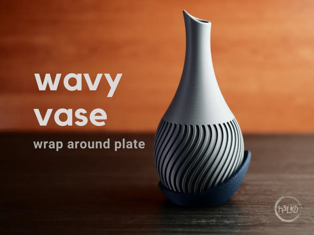 modern minimalist vase design with wavy pattern that sits elevated in a wrap-around plate